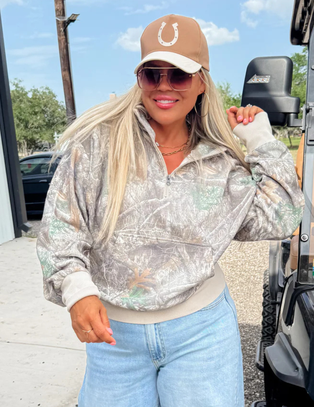 Our cute new camo washed hoodie offers a perfect blend of comfort and practicality. Crafted from high-quality fabric, this pullover has a relaxed fit and comes with a front pocket, zip up neckline and hoodie. Semi crop length (covers belly and past top of waist!) Not too short or too long! Perfect!- thumbholes are present!