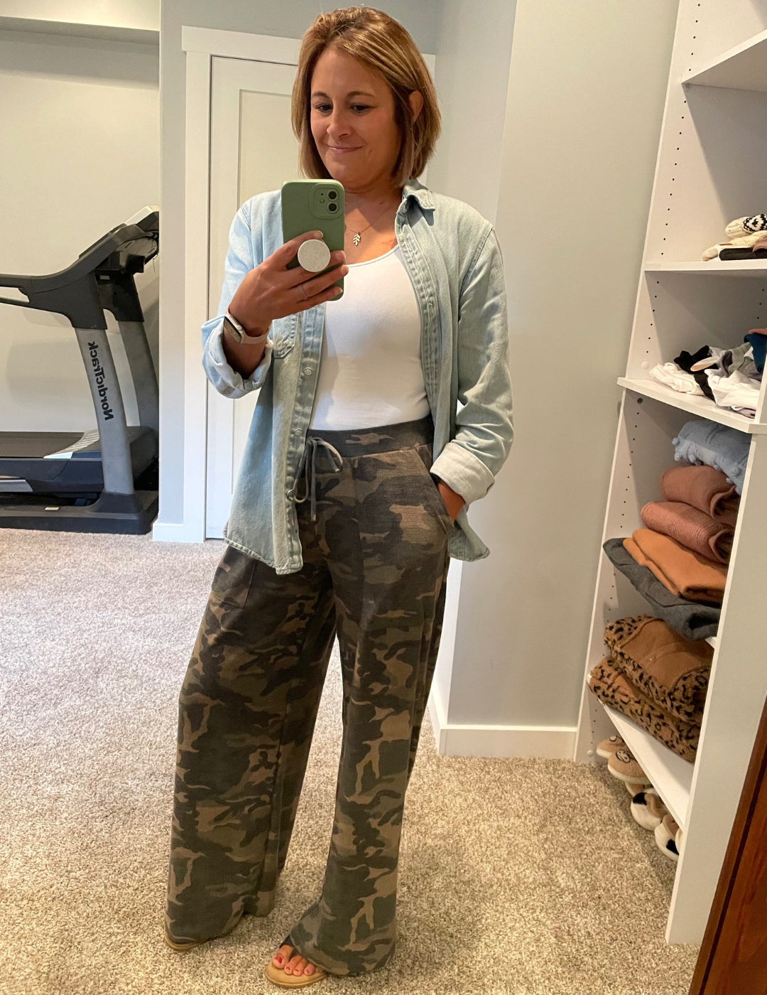 Soft, cozy and so so stretchy! These camo pants are the perfect way to add a "pop" to any outfit!! Features panel pockets, wide legs and elastic waist with faux drawstring.