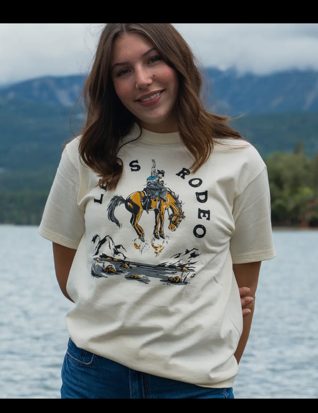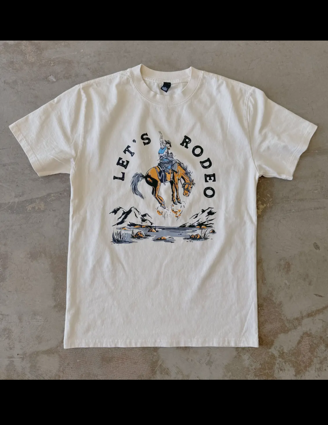 Unleash your inner cowboy (or cowgirl) with our Let's Rodeo Tee. Boxy and oversized with dropped shoulders, this heavy weight tee is made from 100% carded cotton for a comfortable fit. Get ready to ride!