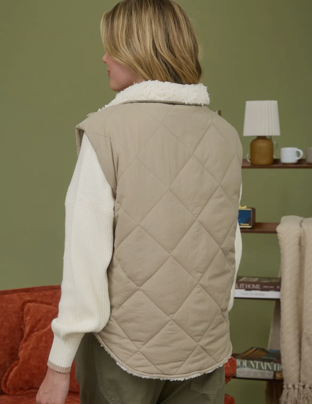 Stay cozy and stylish with this taupe quilted vest, zip-up for easy wear and a high collar that keeps the chill out. Plush fleece lining and handy pockets make it perfect for those playful outdoor adventures or cozy indoor days.