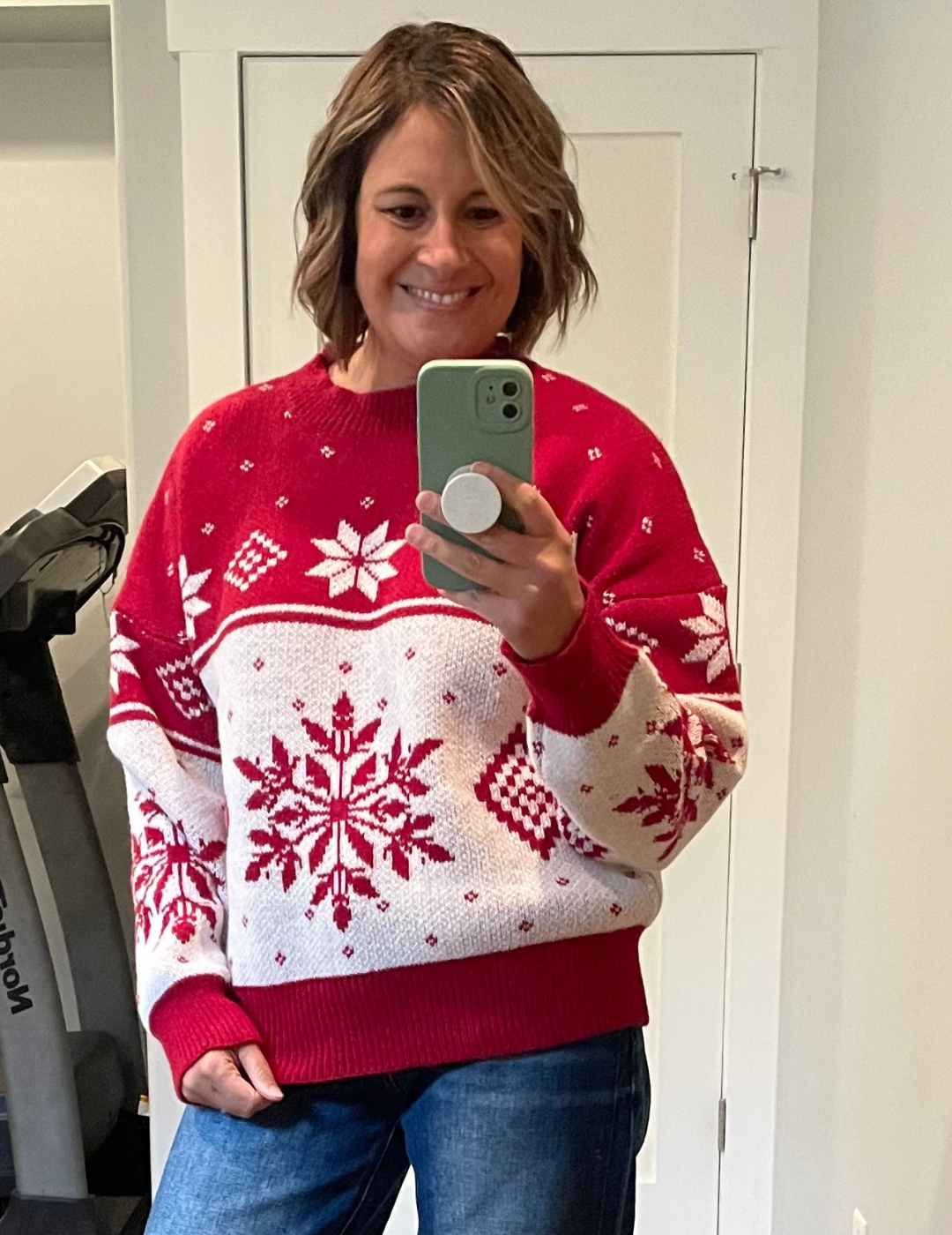 Bring festive cheer to your wardrobe with this playful Red & Ivory Fair Isle Sweater. Featuring a classic crewneck and a charming holiday pattern, it’s perfect for cozy winter days or Christmas celebrations. The vibrant red and soft ivory hues create a joyful look that’s sure to brighten up any gathering. Stay warm and stylish this season with a sweater that’s as fun as the holidays themselves!