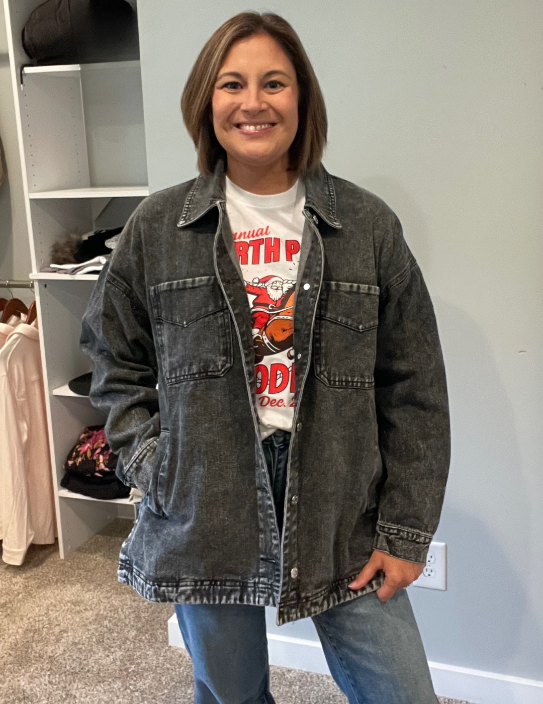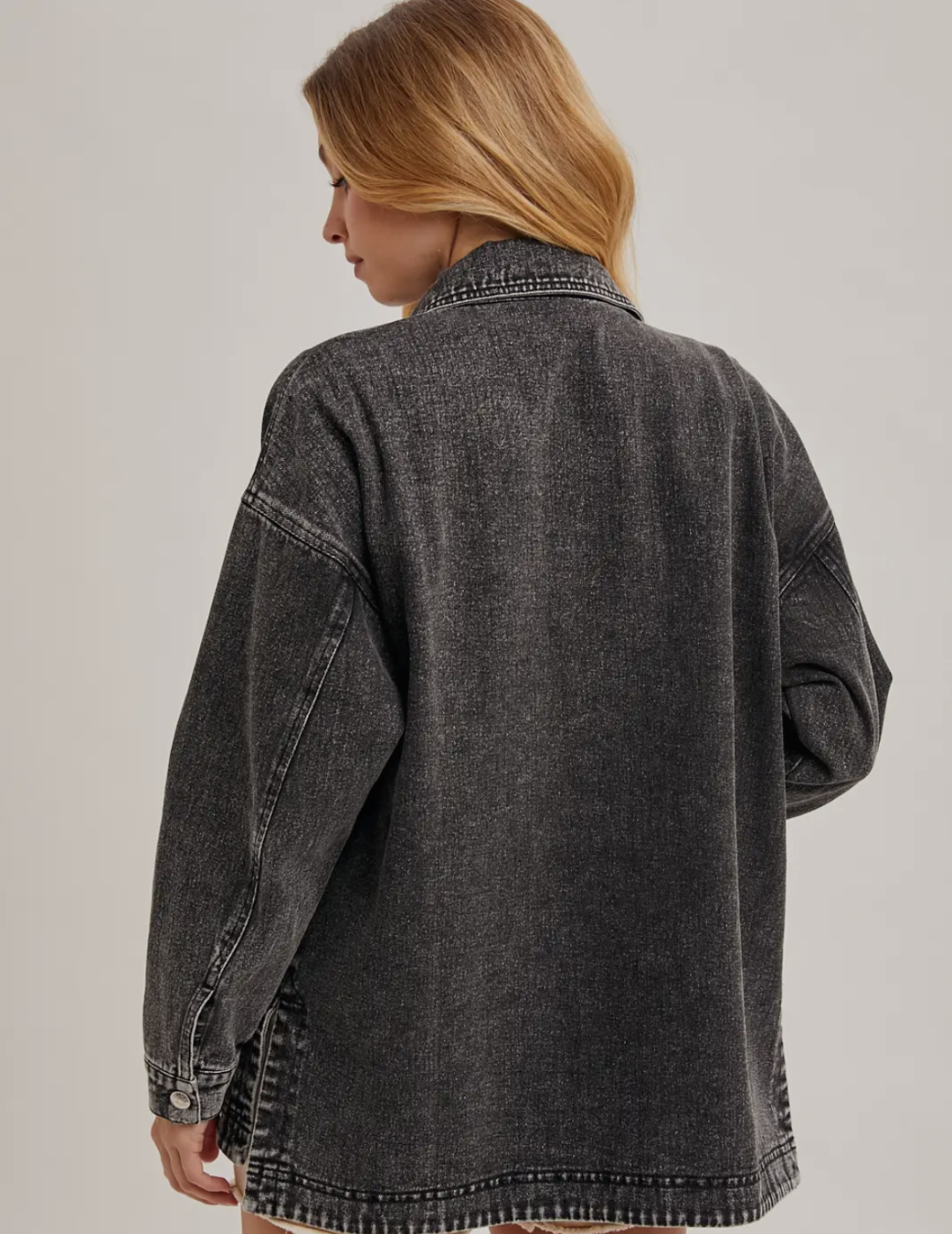 Throw on this washed black denim jacket and instantly level up your casual game. With a classic button-down front, functional pockets, and that perfectly worn-in vibe, it's the ultimate layering piece that plays well with everything in your closet. Whether you're going for effortless cool or cozy-chic, this jacket is your new go-to for adding an edge to any outfit.